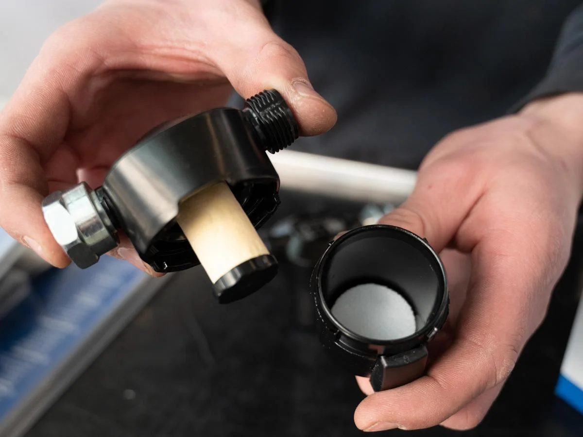 Das Filterpad wird bei jedem Flaschenwechsel getauscht. Der Gasfilter selbst ist langlebig.