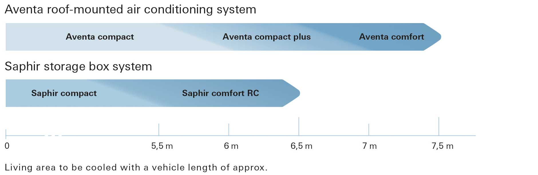 - Pour les véhicules très longs, la meilleure fraîcheur est obtenue en utilisant deux systèmes de climatisation Truma.