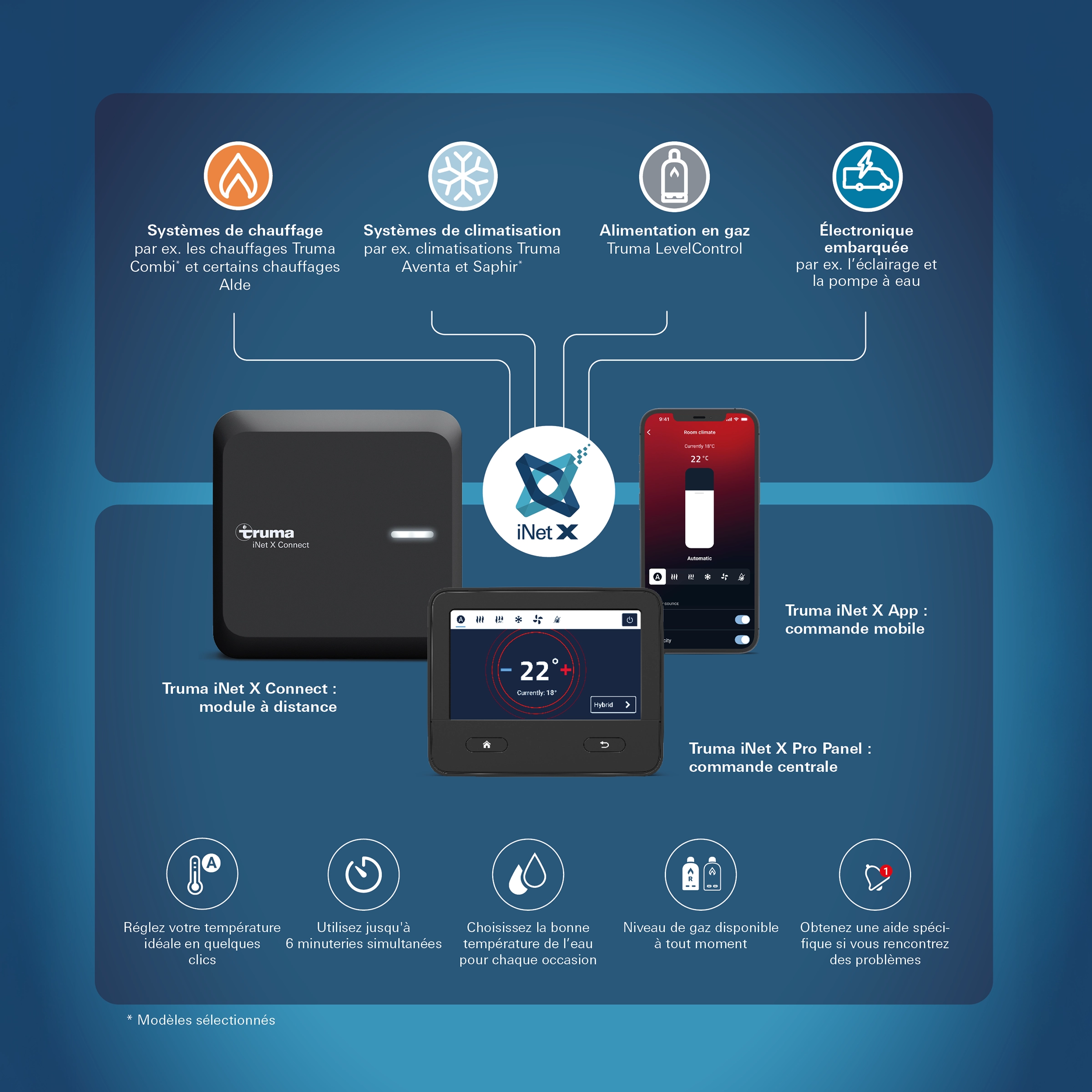 Important : La iNet X App est nécessaire pour télécharger les mises à jour sur le iNet X Panel et pour effectuer des réglages individuels (par ex. réglage des timers, configuration du Truma LevelControl).