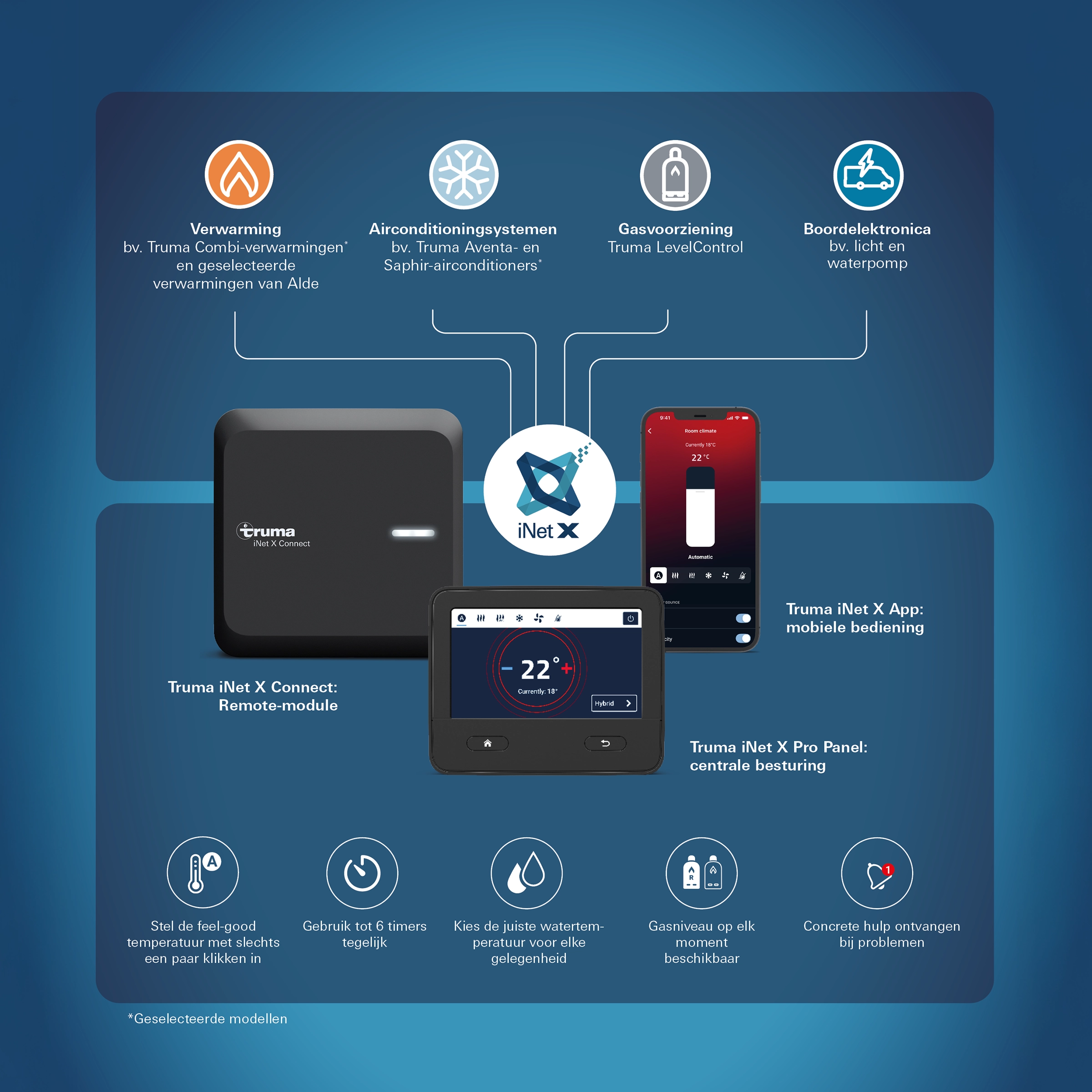Belangrijk: de Truma iNet X App is nodig voor het maken updates op het Truma iNet X Panel en voor individuele instellingen (bv. instellen van de timer, instellen van Truma LevelControl).