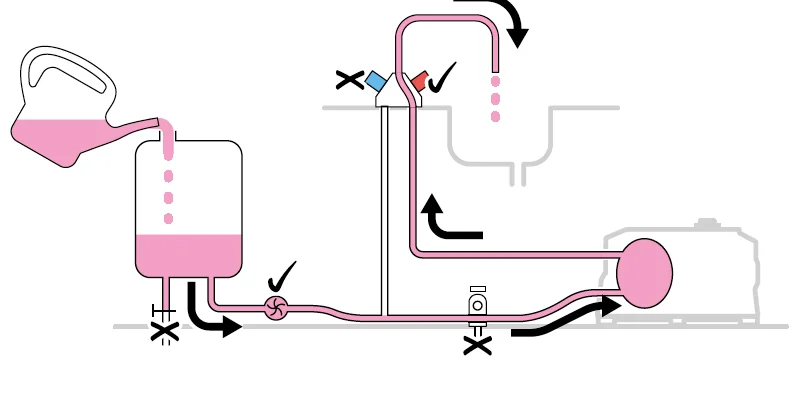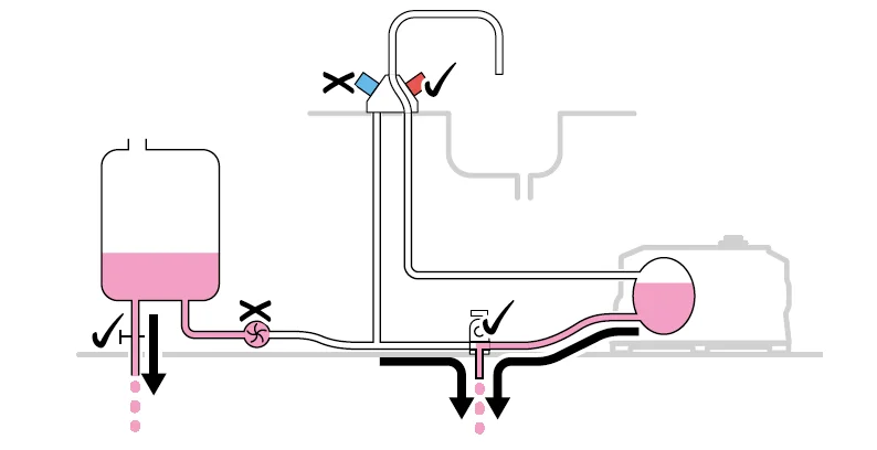 Ofullständig tömning av avkalkningslösningen.